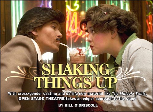 Open Stage Theatre is in the middle of its season, and in the middle of reinventing itself. It’s also in the midst of rehearsing The Mineola Twins, by acclaimed playwright Paula Vogel. Unlike Vogel’s Pulitzer Prize-winning How I Learned to Drive, it’s no straightforward drama. Rather, Twins mixes outlandish satire, farce and theatrical gamesmanship (like…