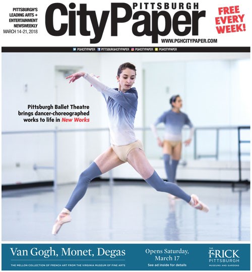 Pittsburgh Ballet Theatre performs New Works Program I: 8 p.m. Fri., March 16; 2 p.m. Sun., March 18; and 2 and 8 p.m. Sat., March 24. Program II: 8 p.m. Sat., March 17; 8 p.m. Fri., March 23; and 2 p.m. Sun., March 25. August Wilson Center, 980 Liberty Ave., Downtown. $28-109. www.pbt.org While there…