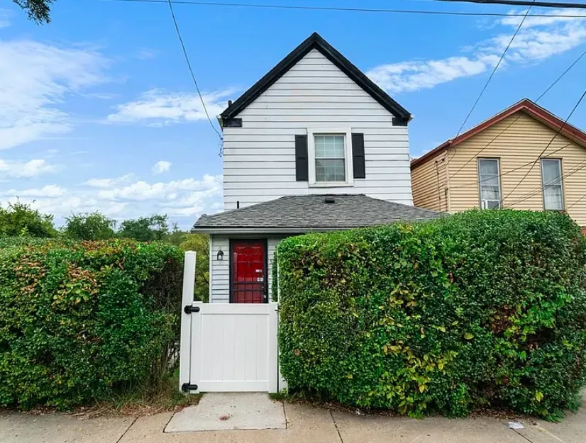 Good news: there are still plenty of sub-$150k houses in Pittsburgh. Of course, the catch is that most are pretty weird. For instance, this one has four bedrooms, but only one off-center window between them. Oh, and a carpet of such luxuriant cerulean blue that it looks like the basement flooded. But that giant hedge/gate combination in front gives this place a sense of privacy, and the back deck gives you some useful outdoor space.