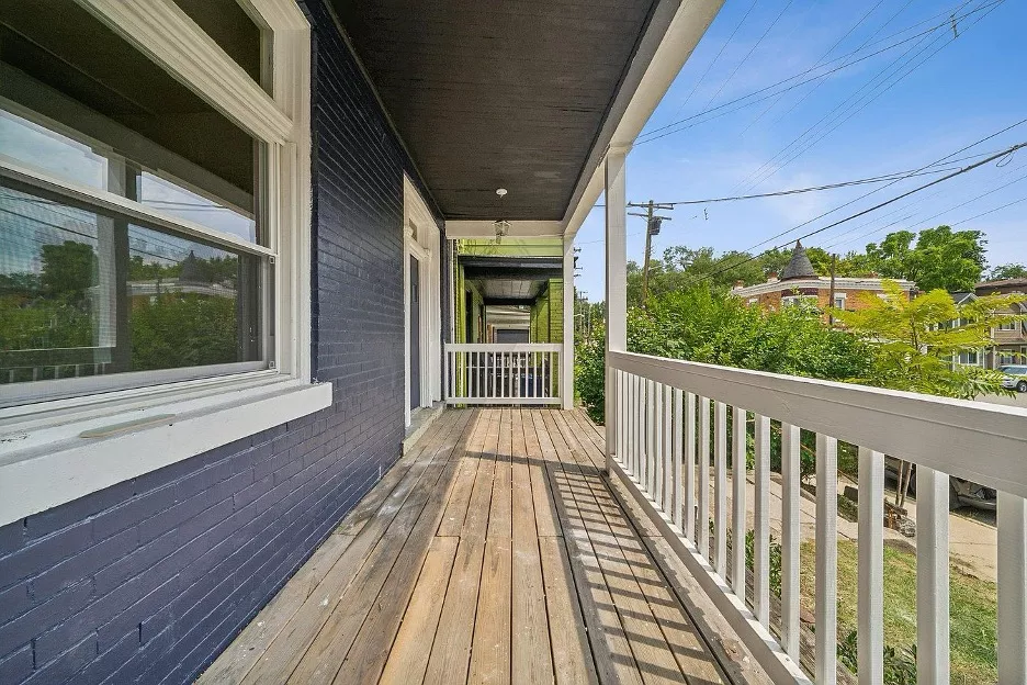 Morningside is such a long neighborhood that this address is actually equidistant to both the Morningside business district and the Bryant St. business district in Highland Park. This is kind of a sweet spot for diversity, affordability, and walkability in the city (minus the all-important grocery store). The building’s blue gable with curved shingles is distinctive and fun, but this apartment is actually on the first floor, so need to push that couch up stairs!
