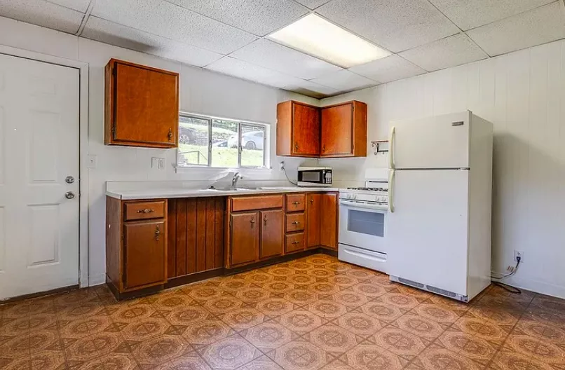 It’s probably just bad lighting, but there’s a chance that this house is not just one but two odd hues of blue, which makes it fascinating. Like, this is not what you do if you want your house to sell as soon as possible — it’s what you do if you’re really into the color blue and want your house to reflect that. (Scrolling down, oh, it is a bad photo; it’s actually blue and white. Okay, that does look better). This is a foreclosure and pitched as an investment property (which always makes me a bit queasy), but hey, maybe you’re listening to Kind of Blue right now and this house speaks to you, and you want to live here. No law against that.