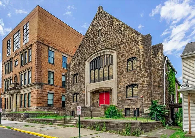 Here’s one for that list of “Things Pittsburgh Is Good at (That No One Cares About)”: reusing old churches. This isn’t even, like, remarkable anymore, right? The trick is that although they are usually beautiful and built to last, they tend to have close to zero of the features you’d want to have in a house to live in. (What’s the opposite of cozy?) That said, this one near the main drag in Homestead is farther down the line of adaptation into housing (or something else) than most. There’s a kitchen, after all. It’s nice to have a bright, airy kitchen — but a giant wall of stained glass is another beast entirely. It’s unique.