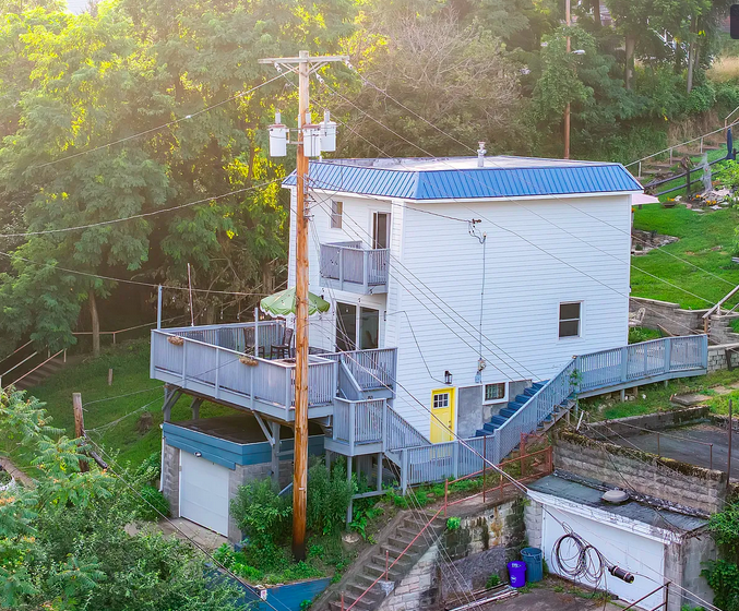 Pittsburgh: where million-dollar views are a dime a dozen. Sure, there are principles to good urban design, but if you are building a house on what most sane cities would consider impossible/impassable terrain, you should get some flexibility. Not sure why this house looks like it has a hat made out of plastic, but it’s got patios galore, some sweet Pittsburgh steps, a bright, airy interior and even a clean, finished basement. Plus, that view is fine.