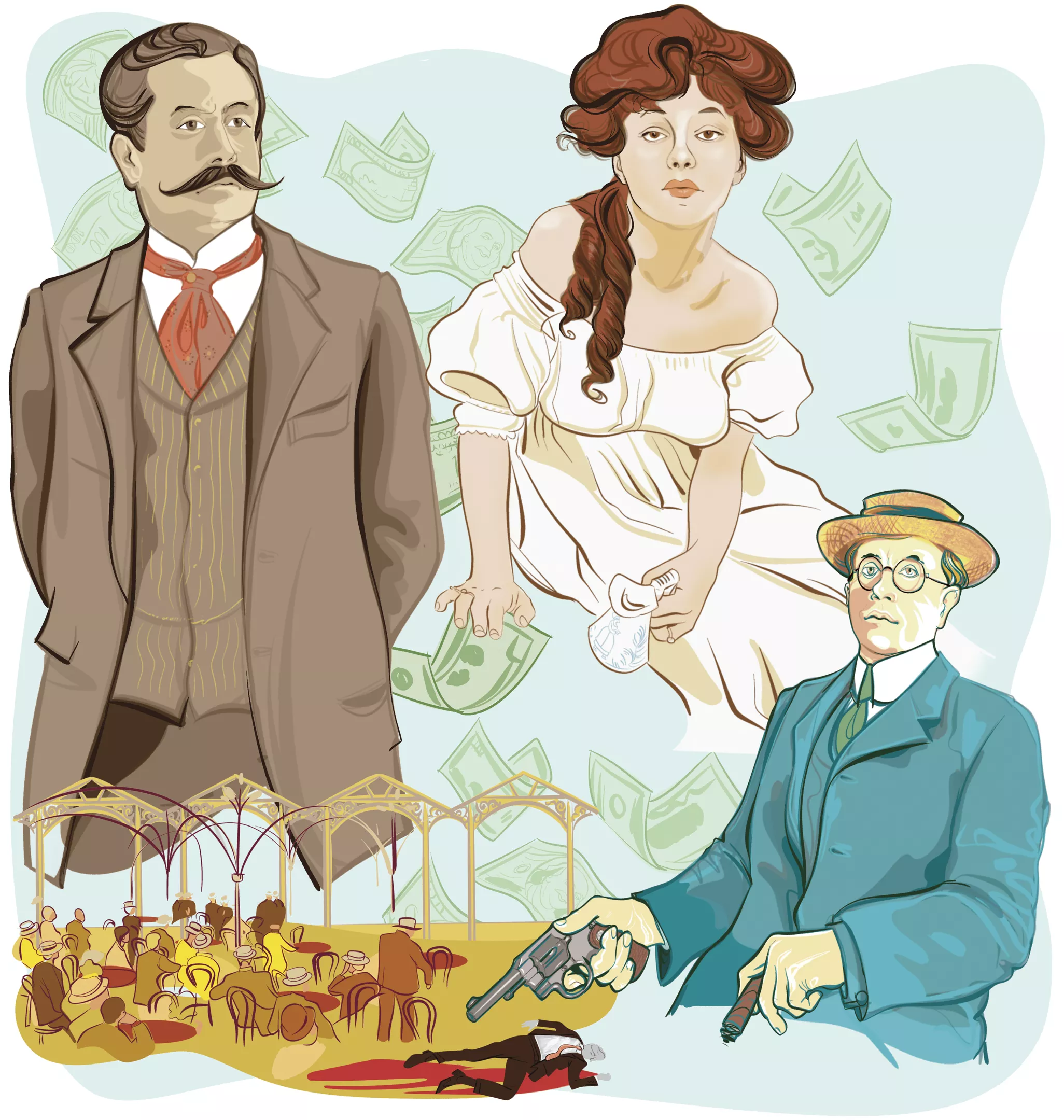 Nesbit’s spirits were buoyed when Thaw announced they’d depart for a European trip from New York City on June 25, 1906 — until he added a stop to see a show at Madison Square Garden. Despite sweltering heat, Thaw wore a long black overcoat. White arrived toward the end of the show — during the final song “I Could Love a Million Girls” — and after some hesitation, Thaw stood and brandished a .38 revolver.