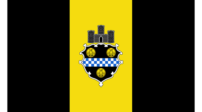 While Pittsburgh landed 24th and was given a B- rating in the Vexillological Association test, I think we could do better. Looking at the city flag, adopted in 1899, it’s hard to know what everything symbolizes. The flag features “The Great Seal of the City of Pittsburgh,” which includes William Pitt’s coat of arms and a triple-towered castle overtop, overlaid on a triband of black and gold.