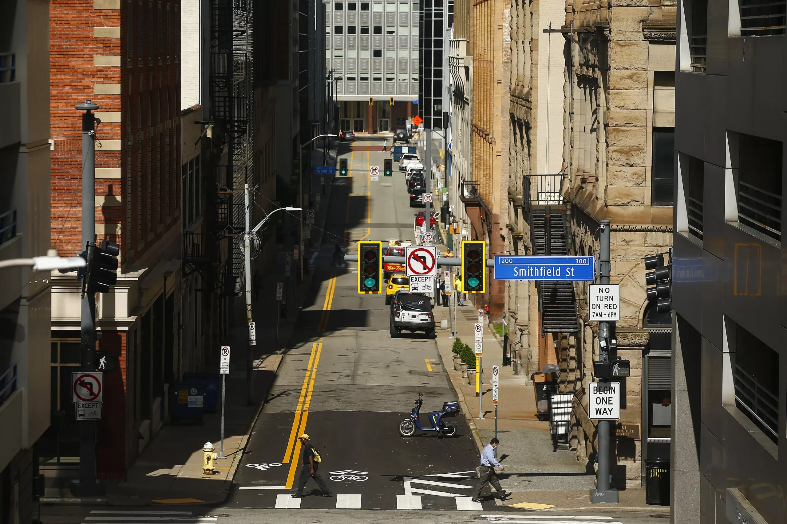 Friday morning, I decided to check out some of the usual suspects as well as adventure to some garages I’ve never been in. (Typically, I’m climbing them to get that perfect angle while photographing a protest or a championship parade). I started near Penn Avenue in the Cultural District and made my way towards my former college, The Art Institute of Pittsburgh, along Boulevard of the Allies. There are certainly plenty of photogenic “landscape” scenes, but I tried to stray from shooting too many of those, instead seeking out interesting shapes, lights, or moments.