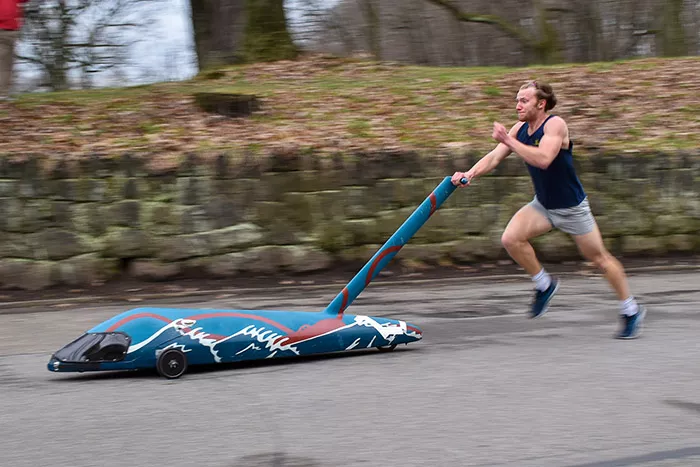 The event is a traditional part of the Pittsburgh university’s Spring Carnival dating back to 1920. Friday’s races were part of a set of preliminary races; final races were held the morning of April 9. Ten teams competed in women’s and men’s races, with runners pushing the buggies up and down hills, as well as letting them freely roll for a portion of the race.