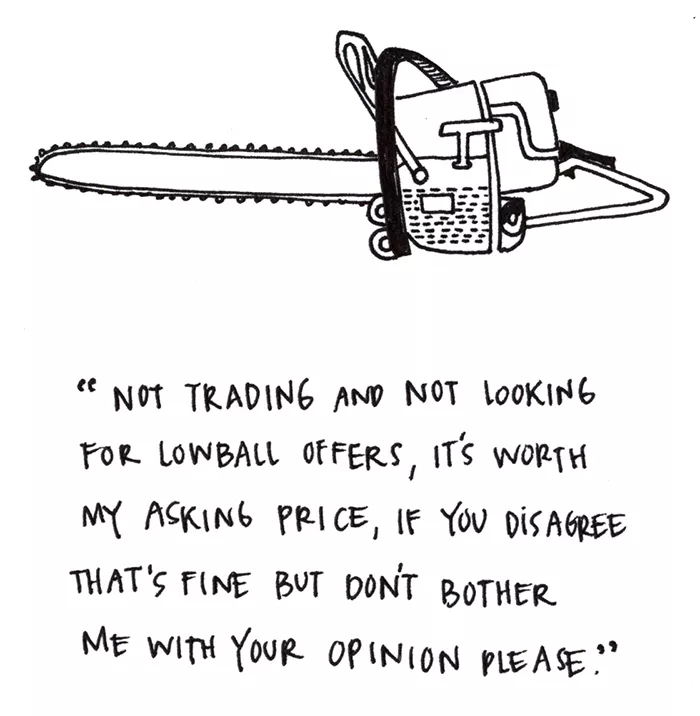 Stuff can be complicated, especially when trying to get rid of it. The process can remind us that our things can have worth that’s hard to put a dollar amount on; they can call to mind other people from our lives; they can bring up memories of what they were (or weren’t) used for. For Sale with Baggage documents items for sale in the Pittsburgh area from marketplace listing sites. Captions are written by the owners themselves, illustrated by Abbie Adams.