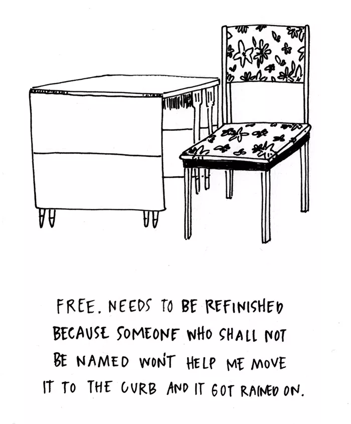 Stuff can be complicated, especially when trying to get rid of it. The process can remind us that our things can have worth that’s hard to put a dollar amount on; they can call to mind other people from our lives; they can bring up memories of what they were (or weren’t) used for. For Sale with Baggage documents items for sale in the Pittsburgh area from marketplace listing sites. Captions are written by the owners themselves, illustrated by Abbie Adams.