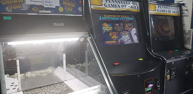 If you head to your right, you’ll choose between not one but two Pennsylvania Games of Skill machines, two different PA Lottery scratch-off dispensers, and that push-the-quarter-off-the-ledge game that only geniuses or suckers play — like any type of irresponsible gambling, there has to be a system.