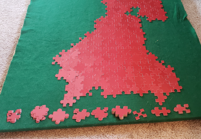 I consider myself a puzzler, maybe the only puzzler, since I just made the term up. I’ve completed or contributed to the completion of puzzles ranging from 500 to 1,500 pieces. (I’m also really annoying about it because I point out and celebrate almost every piece I get correct. So, shoot me an electronic mail if you want to experience that.) I’ve done landscape puzzles, candy wrapper puzzles, school of fish puzzles. After completing a Thomas Kinkade puzzle, I felt unstoppable. For you newbs, Kinkade’s foliage-heavy painting is to puzzling as the cryptex is to The Da Vinci Code.