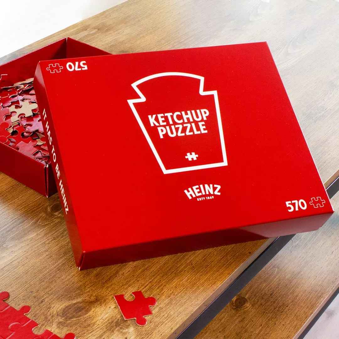 The press release reads: “Heinz recently stepped in to help people around the world pass the time by releasing the Heinz Ketchup Puzzle, an all-ketchup, 570-piece red puzzle. Due to an overwhelming response, a limited run of Heinz Ketchup Puzzles are now available for purchase online … Heinz is making a $10,700 donation (107,000 meals) to Feeding America, which represents the U.S. profits of sales from the puzzle.”
