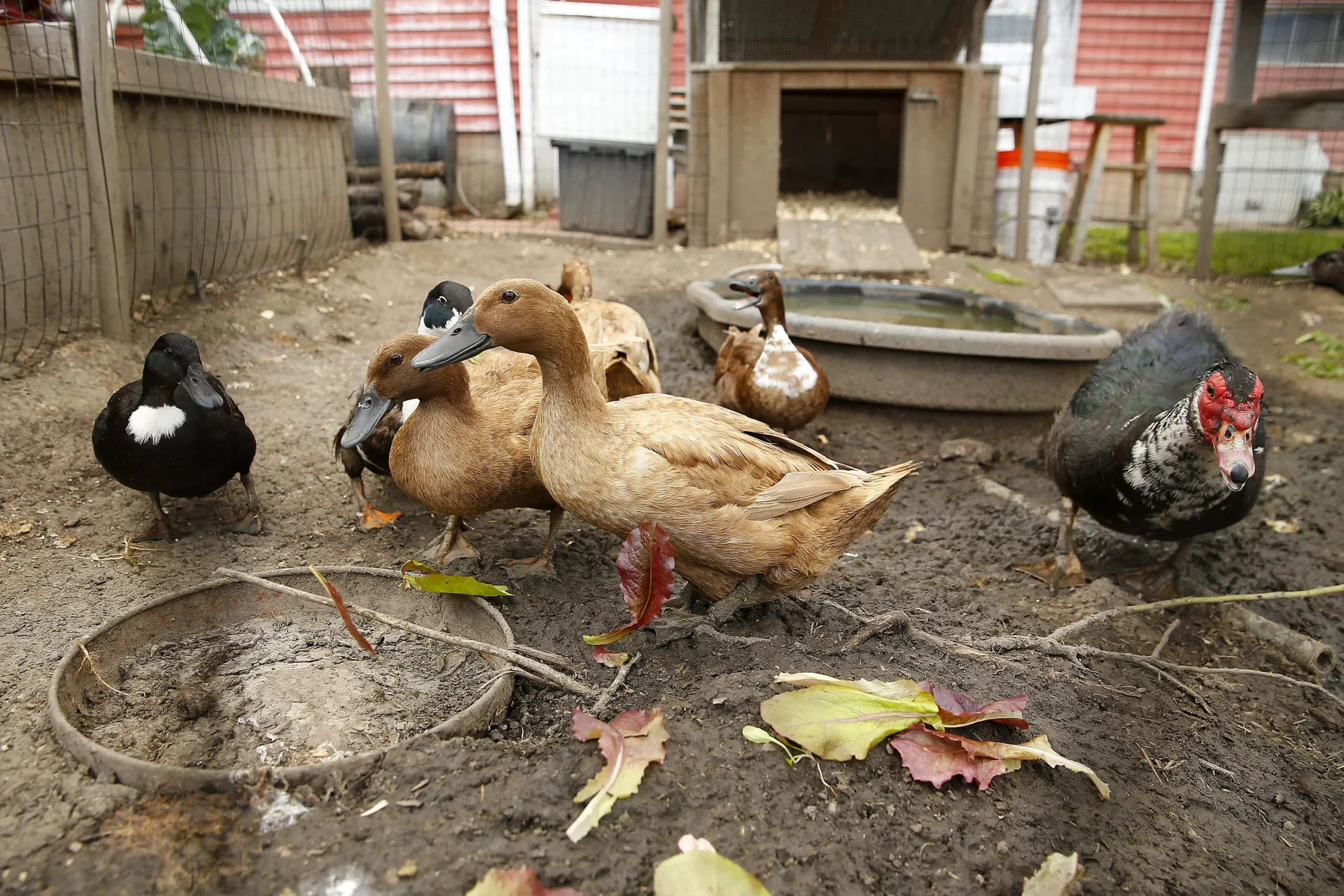 Various types of ducks feed on scraps from Ben’s garden. Credit: CP Photo: Jared Wickerham