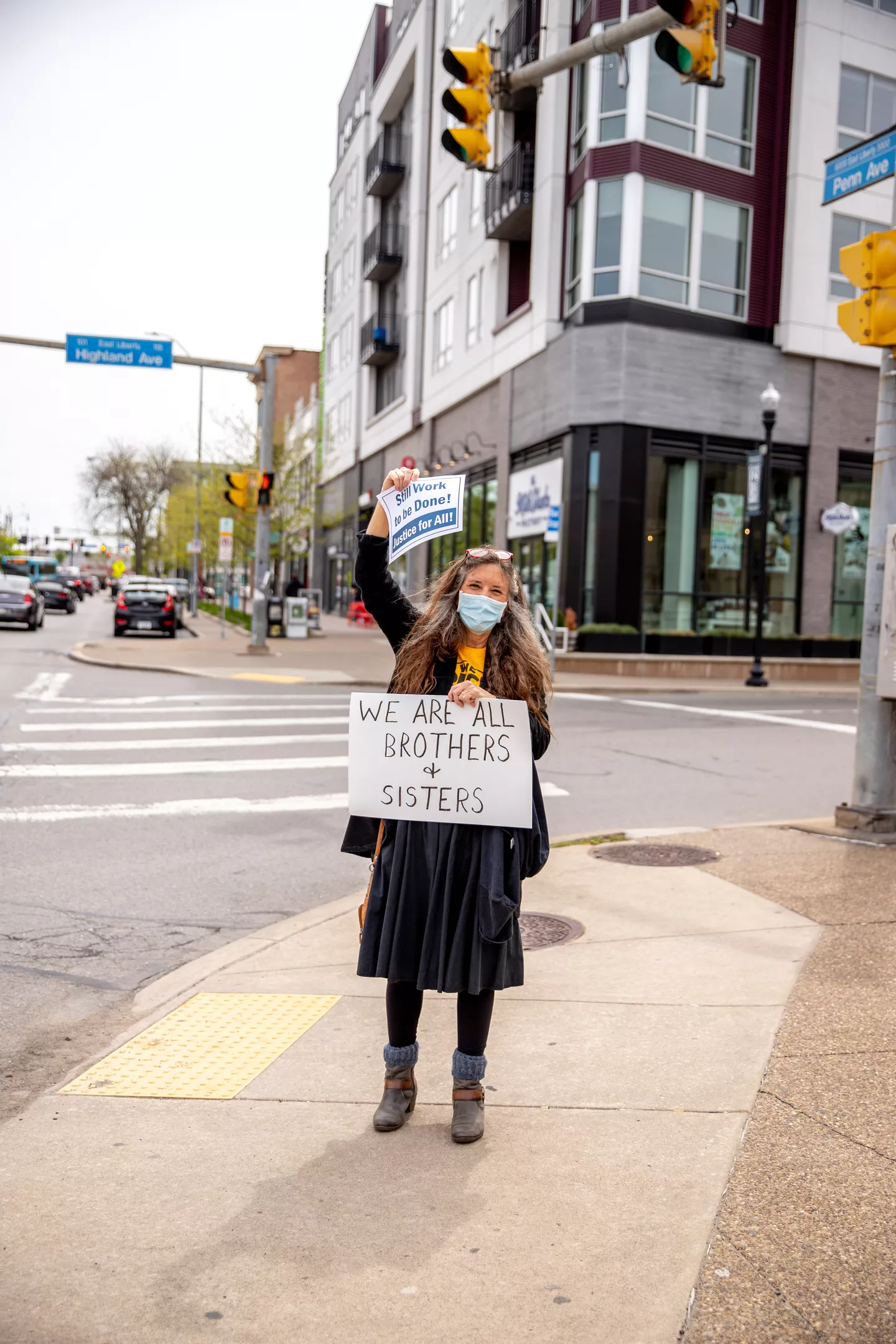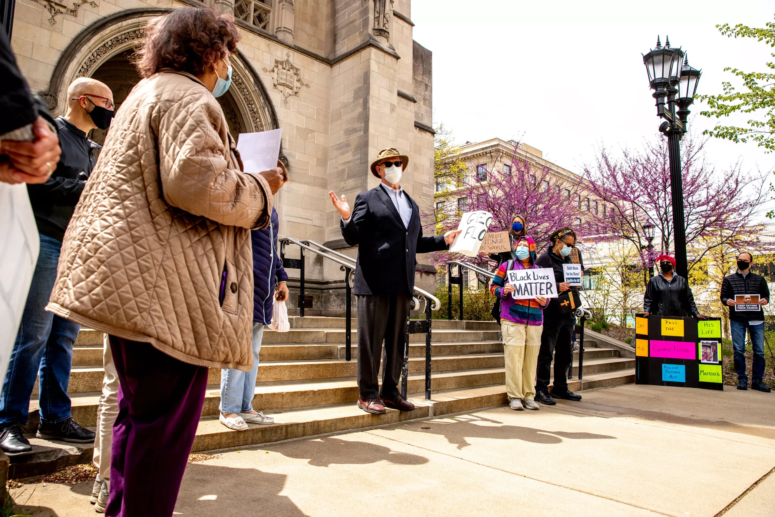 Upon arriving, I spoke with some of the vigil participants, including the head pastor of East Liberty Presbyterian Church, Reverend Randy Bush, who explained how his church is interracial and is committed to equality and racial justice. Last year, the church held a similar vigil in response to the death of George Floyd. After the conclusion of Derek Chauvin trial, during which Chauvin was found guilty on all accounts, Bush explained he wanted the message not to be lost in the headlines. The signs of many protesters, which read, “Still Work to be Done,” reflected this sentiment.