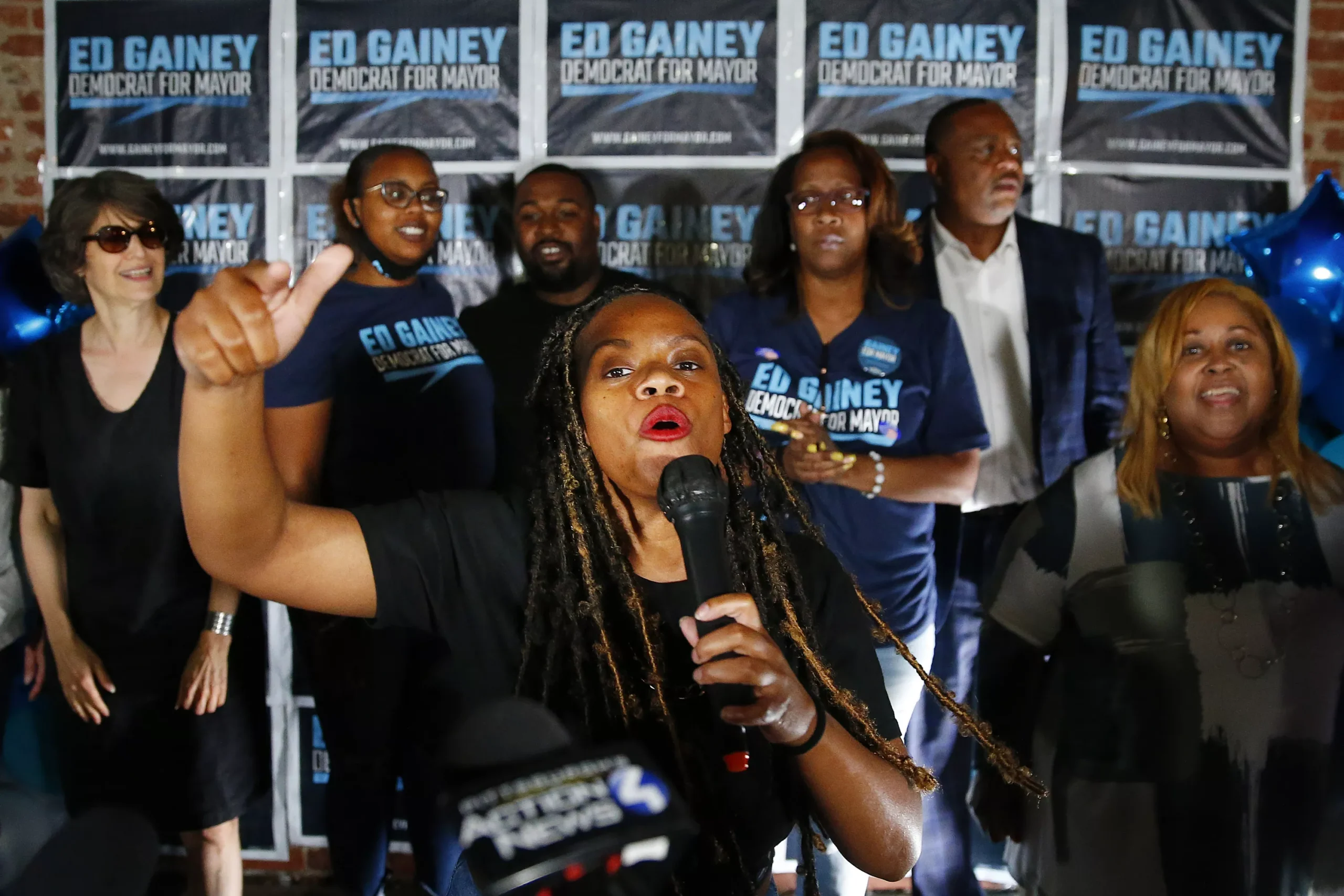 Rep. Summer Lee speaks prior to the acceptance speech by mayoral candidate Ed Gainey during his watch party. Credit: CP Photo: Jared Wickerham
