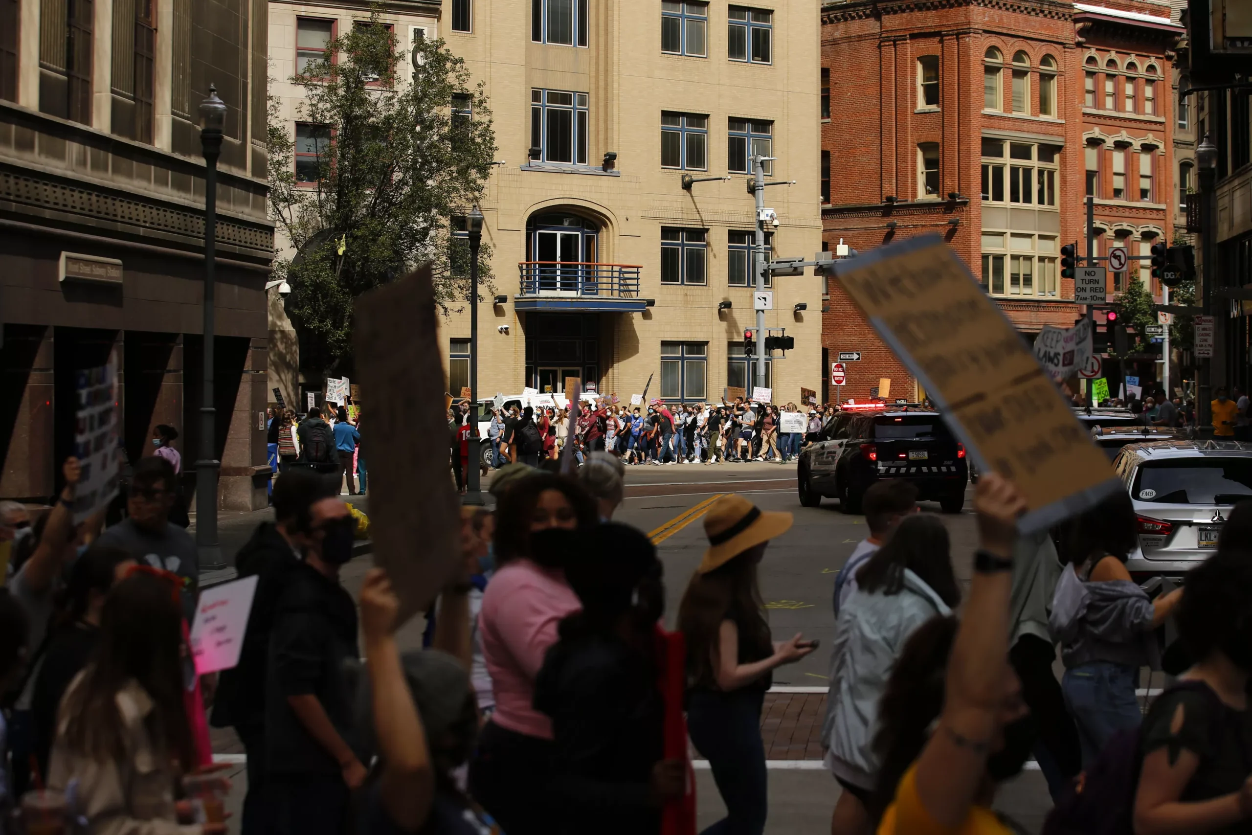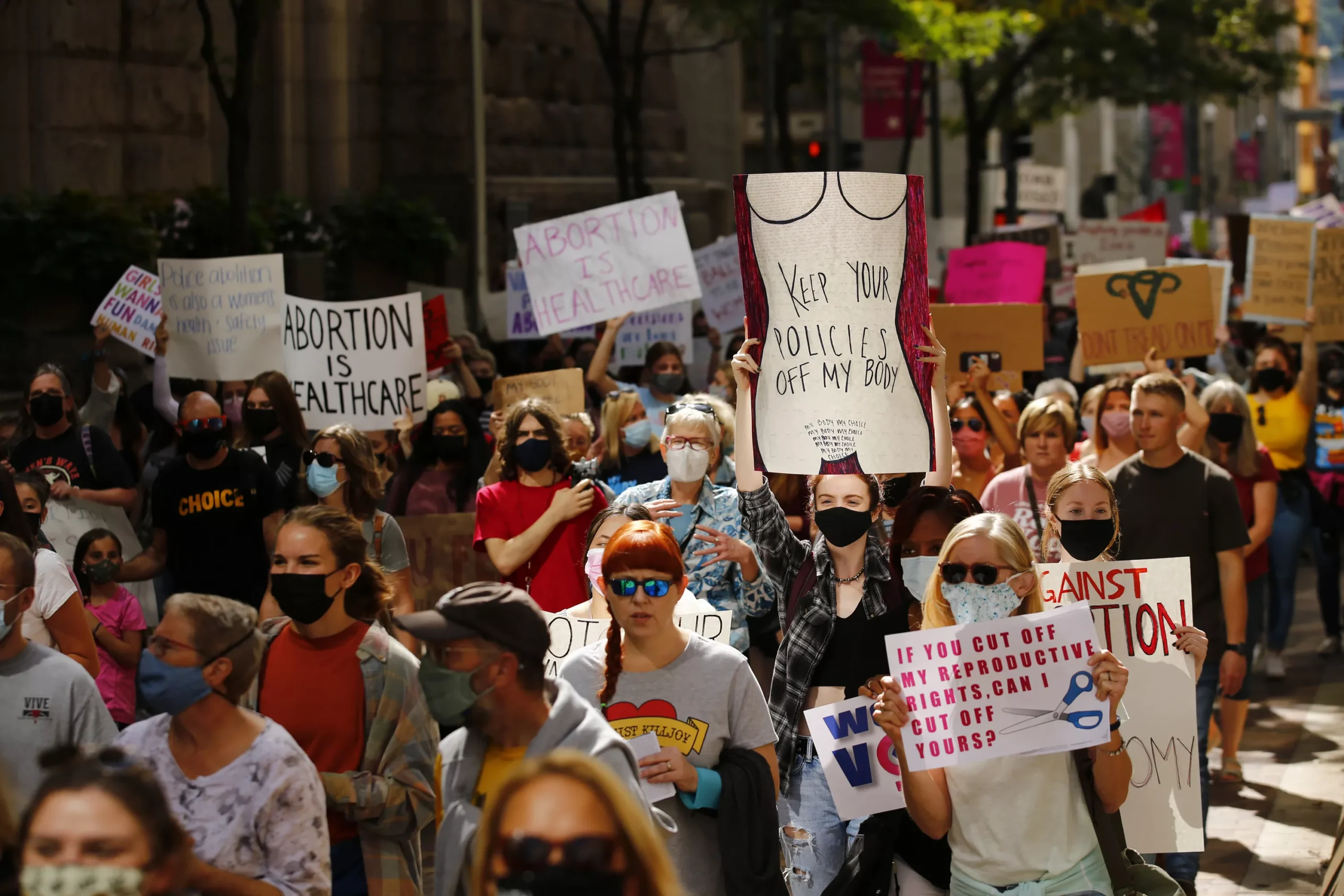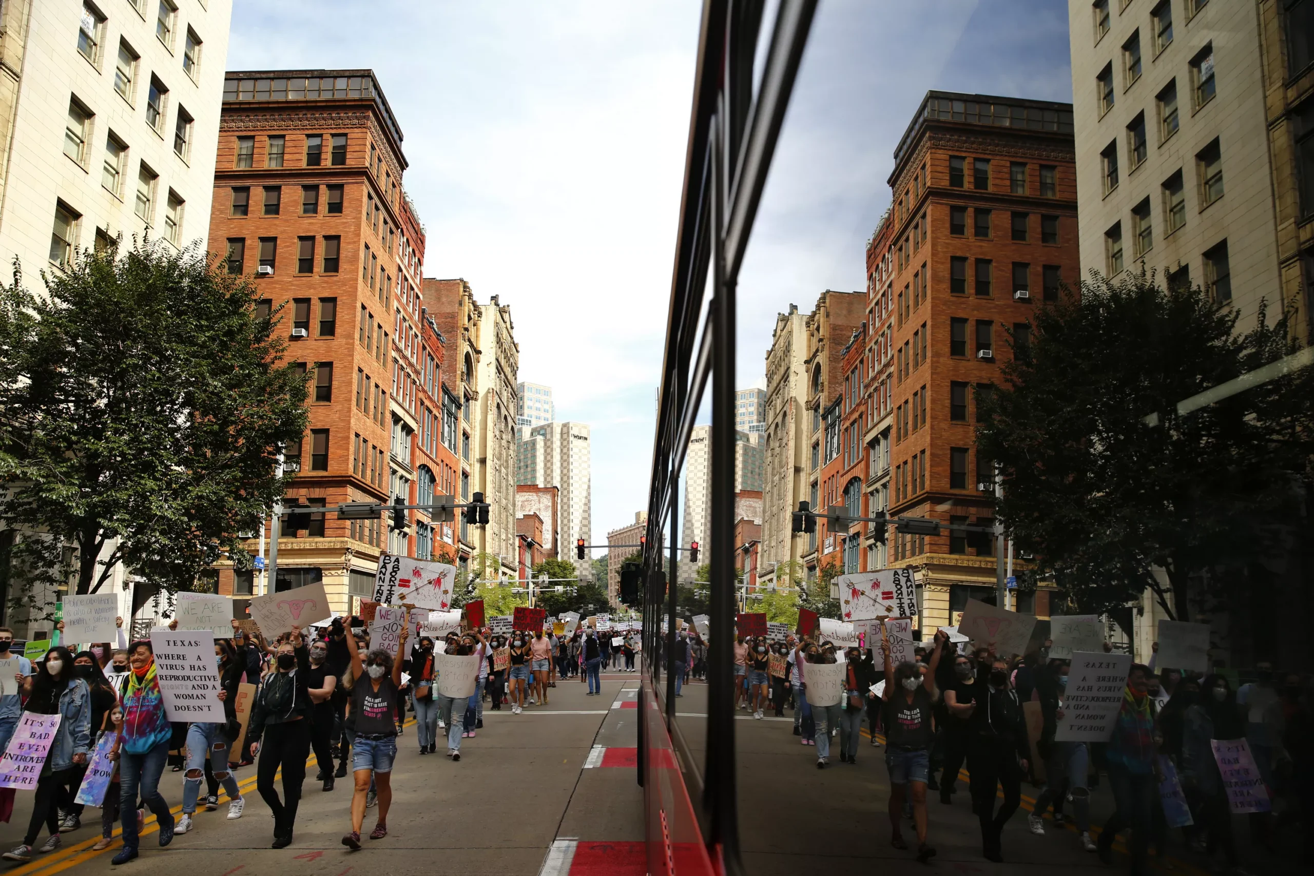 Thousands of people gathered and marched throughout Downtown Pittsburgh on Sat., Oct. 2 as part of a “Defending The Right To Choose” rally in support of abortion rights.