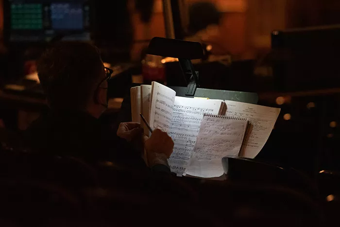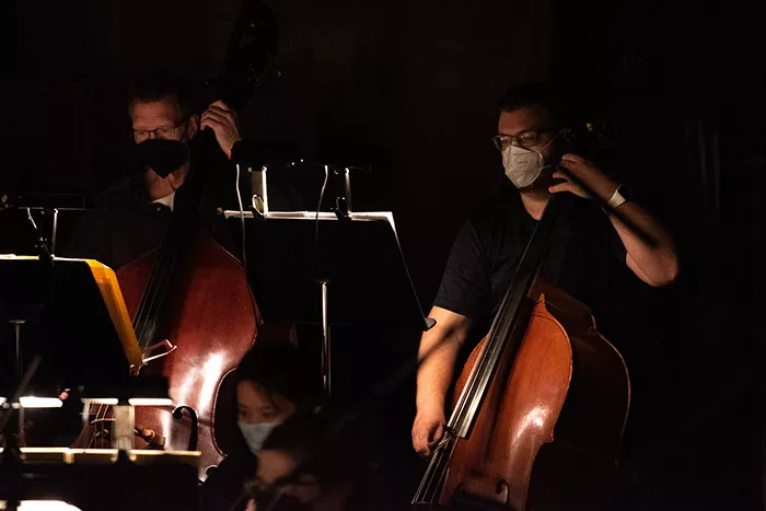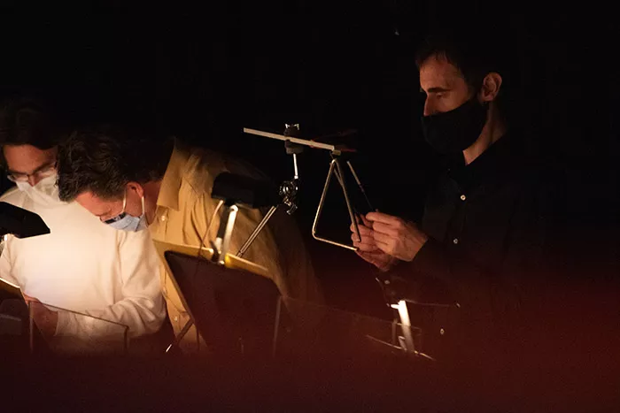 Between these stellar performances, members of the orchestra chatted, one even watching a college basketball game between musical instruments.