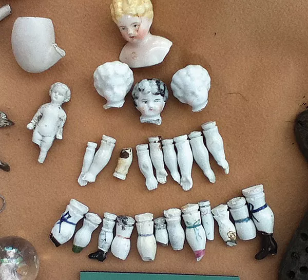 Doll Arms at the Carnegie Science Center. Among the household items excavated on nearby (and erstwhile) Portman Row. On staircase to lower level Omnimax Theater.