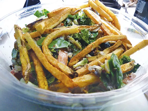 Hello Bistro salads. Create a whatever-you-want-type salad, get fries on the side for $2, put them together and voila! www.hellobistro.com