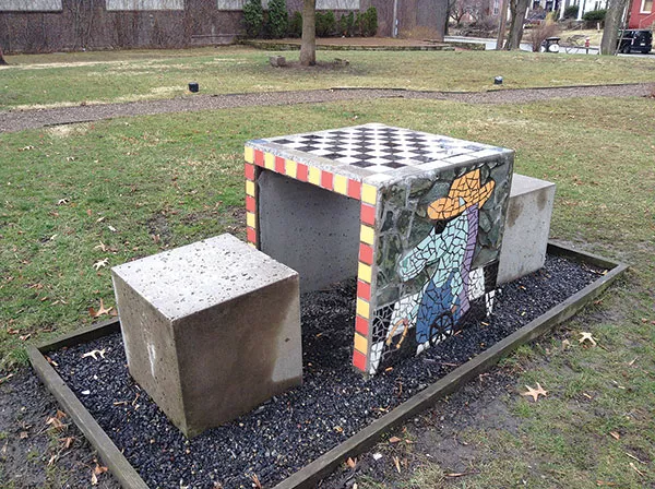Outdoor Chess Tables. Shake winter’s dust off your brain at one of several tables around town. Bring your own chessmen, or checkers pieces. This table’s in Friendship.