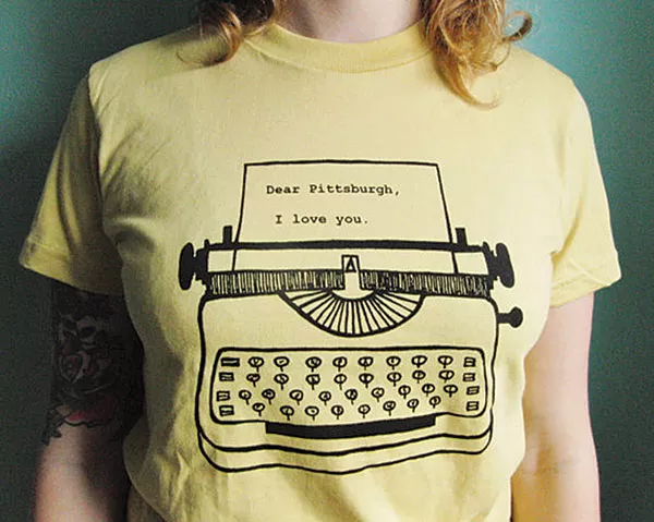 Dear Pittsburgh, I Love You. Local artist Amy Garbark screenprints adorable typewritten love letters to the city on tea towels, T-shirts, lapel pins and more. Another favorite from her shop: “P is for Pierogi” baby bibs. www.garbelladesign.com
