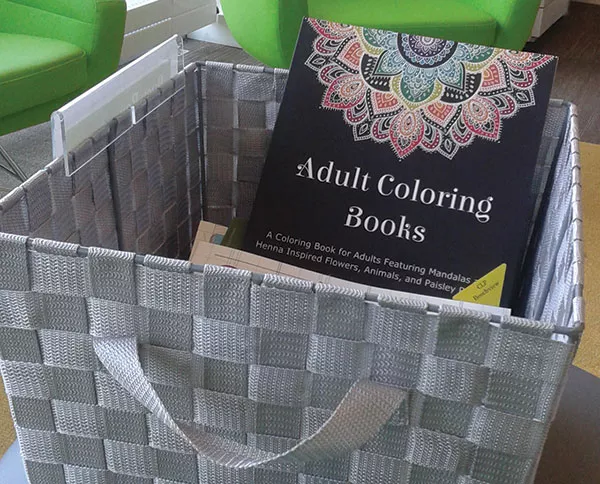 Busy Box. Several branches of the Carnegie Library offer these boxes for adults, which include coloring books, colored pencils, sudoku puzzles and craft supplies. www.carnegielibrary.org