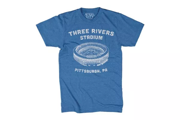 Three Rivers Stadium T-shirt. Digging this locally made throwback to the Steelers’ old home. www.steelcitycottonworks.com
