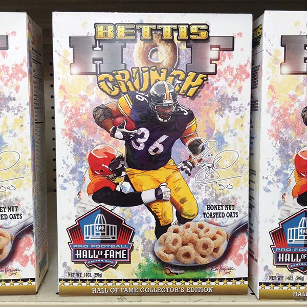 Bettis HOF Crunch. This box isn’t going to win any design prizes, but you know what these honey nut toasted oats taste like? Victory!