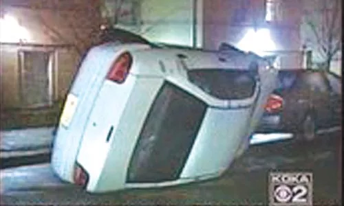 Summary: Super Bowl victory No. 6 for the Steelers ignites more than the crowd. Reporter: David Highfield, KDKA Channel 2 Airtime: 1 minute, 38 seconds on Feb. 2 Visuals: * Roaring, drunken people “celebrating.” * Terrible Towels being waved from every possible place you could think of — including traffic lights. Highlights: * When a sweaty, exhausted-looking but composed Bob Pompeani, live from Tampa Bay, throws it to Oakland, where Highfield seems to be handling things quite well (at least on camera): “Celebrations are taking place right now as we told you throughout Pittsburgh.” * When a somewhat disheveled-looking Highfield reports, “Hi, Bob. Yeah, we are in Oakland here, where the celebrating got a little bit outta control. Now, I will say the crowd is beginning to thin a little bit here, but this is one of the fires right over here. It is out, but take a look at some video from what it looked like earlier. This was a sofa that somebody set on fire, and some other rubbish that they added to it. Just one of several fires that we’ve seen here.” * When he adds, “In fact, we just ran over … to a fire on Atwood Street where a car was sideways in the street. Somebody lit that on fire, the windows were smashed out. There was also another fire on Forbes Avenue.” * When Highfield manages to find an upside to all this mayhem: “The good news is, we have not heard of anyone being injured here.” * When Highfield continues to huff and puff, “In fact, there’s a strong police presence. We’ve seen police officers in riot gear, we’ve seen a state-police helicopter flying overhead, we’ve also seen state police — they almost look like tanks — ah, police officers mounted on horseback as well, moving through here to disperse the crowds. But again, a number of fires, two people at least taken into custody — I saw those two people taken into custody. They were from a large fire down here on Forbes Avenue. And the crowd, although still very active out here as they celebrate No. 6, it seems as though it’s thinning out just a little bit. That’s the very latest from Oakland. We’ll send it back to you in the studio.” What We Learned: Keep this in mind for Valentine’s Day, guys: There’s no better way to show your passion than by setting your girl’s sofa on fire or overturning her car! Unanswered Question: Where can I get a good deal on a new sofa? News Value: 3. Whoa. Are we in West Virginia, people?