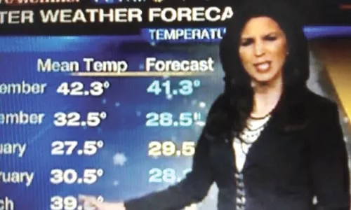 Summary: The highly puffed, perfunctory, seasonal weather-guessing segment. Reporter: Julie Bologna, Scott Harbaugh on WPXI Channel 11 Airtime: 3 minutes, 53 seconds on Nov. 3 Visuals: * Computer-generated snow flurries behind Bologna and her weather charts. Highlights: * When anchor David Johnson ponders, “Remember last February, which proved to be the snowiest month of the winter? … Are we in store for an even snowier winter this year? Most areas have already experienced the first snowfall, but it looks like a lot more is on the way this winter.” * When anchor Peggy Finnegan spews these deep thoughts: “Mmm …” * When Bologna boasts, “Well, I’ve been crunching the numbers and looking at the computer models. … [N]ow, the mean temperature in November, which is when you take the high and the low, you add them together and divide by two, and you do that for every day of the month.” Then as, she does a month-by-month breakdown from November through April of her mean-temperature predictions, she says, “Now, if you were to take all of these numbers, and add them together, divide by six — this gives you a general, rough idea of what the overall mean temperature would be.” Whoa, whoa, whoa, Julie! You get paid to do the math. * When Bologna warns, “I think you may wanna get those shovels ready, because I’m forecasting above-average numbers. … We get most of our snowfall in January, historically, about 12.3, I’m forecasting above that.” * When Bologna throws more numbers at us faster than a hurtling snowball: “So, you add ’em up, average number, in inches, 40.2, I’m forecasting above that — at 51.8. … Of course, it wouldn’t be a winter-weather forecast unless we find out about the possibility of a white Christmas.” * When Harbaugh takes over: “[H]onestly, most of the area usually doesn’t get a white Christmas. Only 20 percent of the time in the Pittsburgh area is there at least 1 inch of snow on the ground during Christmas day. … [T]he question for a lot of folks is, ‘Will we have a white Christmas?’ … I say YES!” * When Bologna comforts us, “But of course, no matter what Mother Nature brings us, I’ll be here to get you through the storm safely and calmly.” What We Learned: So basically, WPXI is forecasting that it’s going to be winter. Unanswered Question: Why doesn’t Julie tell us why we really need the shovels here? News Value: 0 degrees Fahrenheit. Isn’t it great to know Julie’s going to be there for us when we’re driving on a sheet of ice, ready to shit our pants as we plow head-on into a telephone pole on a brick street in Brookline?
