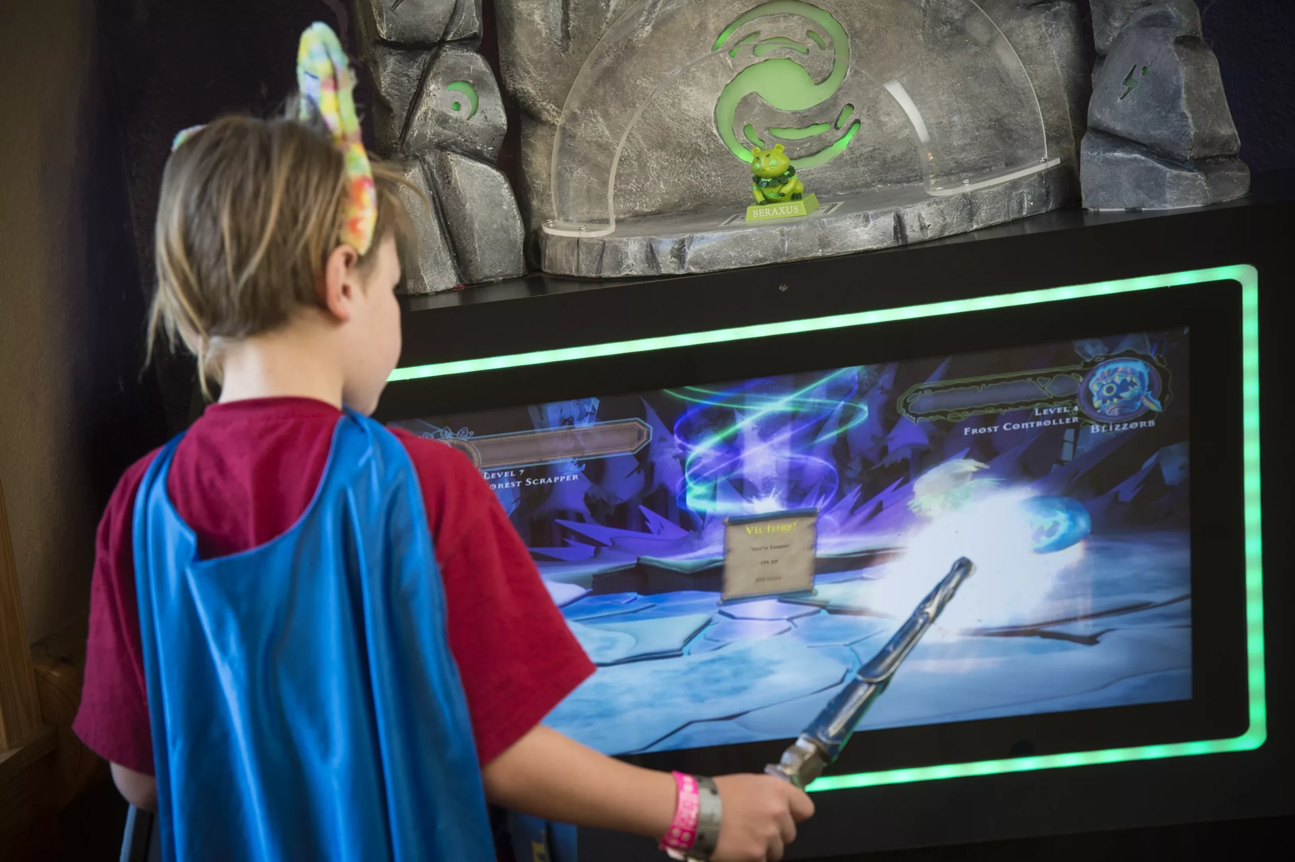 My daughter loves the waterpark, which has a great selection of slides and pools, a lazy river, and the like. My son loves the MagiQuest. If you are still reading, MagiQuest is an “interactive live-action, role playing game where players embark on quests and adventures in an enchanted fantasy world using real magic wands to solve the mysteries of the game.” In plain English, kids search for boxes, screens, and framed pictures that may or may not make sounds and light up when they wave their wands at them. Treasure chests open and a strange voice says, “You have found 100 gold.” It doesn’t ever seem to work properly, and I always get worked up that I don’t think we are doing it right. But the kids love it.