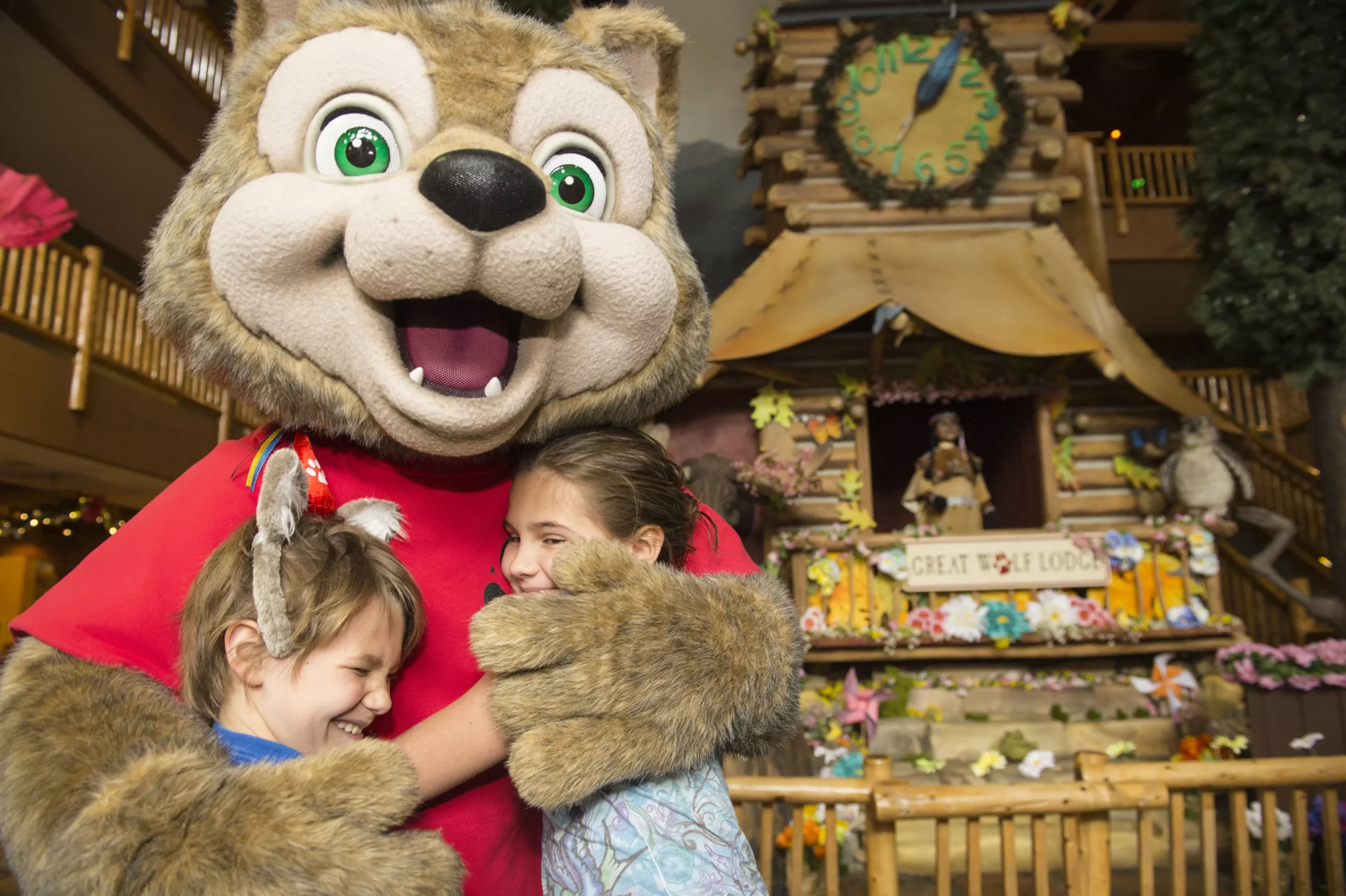 Great Wolf Lodge is like if The Great Northern Hotel from Twin Peaks and Chuck E. Cheese’s had a love child. The resort is replete with faux-wood composite that is used for anything and everything from the grand main floor staircases (think of that famous Titanic scene) to the lobby’s couches, loveseats, and chairs. They are very committed to the lodge theme. There’s a fireplace, a large animatronic theatrical stage, and throngs of children adorned with branded wolf ears. Are you uncomfortable yet?