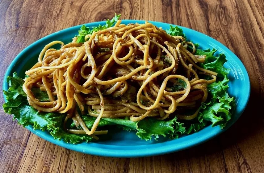 The nutty, spicy dressing that coats the chewy noodles of the Peanut Noodle Salad makes me want to eat it in private. Smooth with toasty notes and a bite from fresh scallion, it has a delightful kick that makes your tongue and lips tingle just the right amount. Originally available only on the famous Sunday Brunch buffet, fans demanded more access, and now this vegan staple is always available. It’s best served at room temperature to allow for maximum noodle coverage.