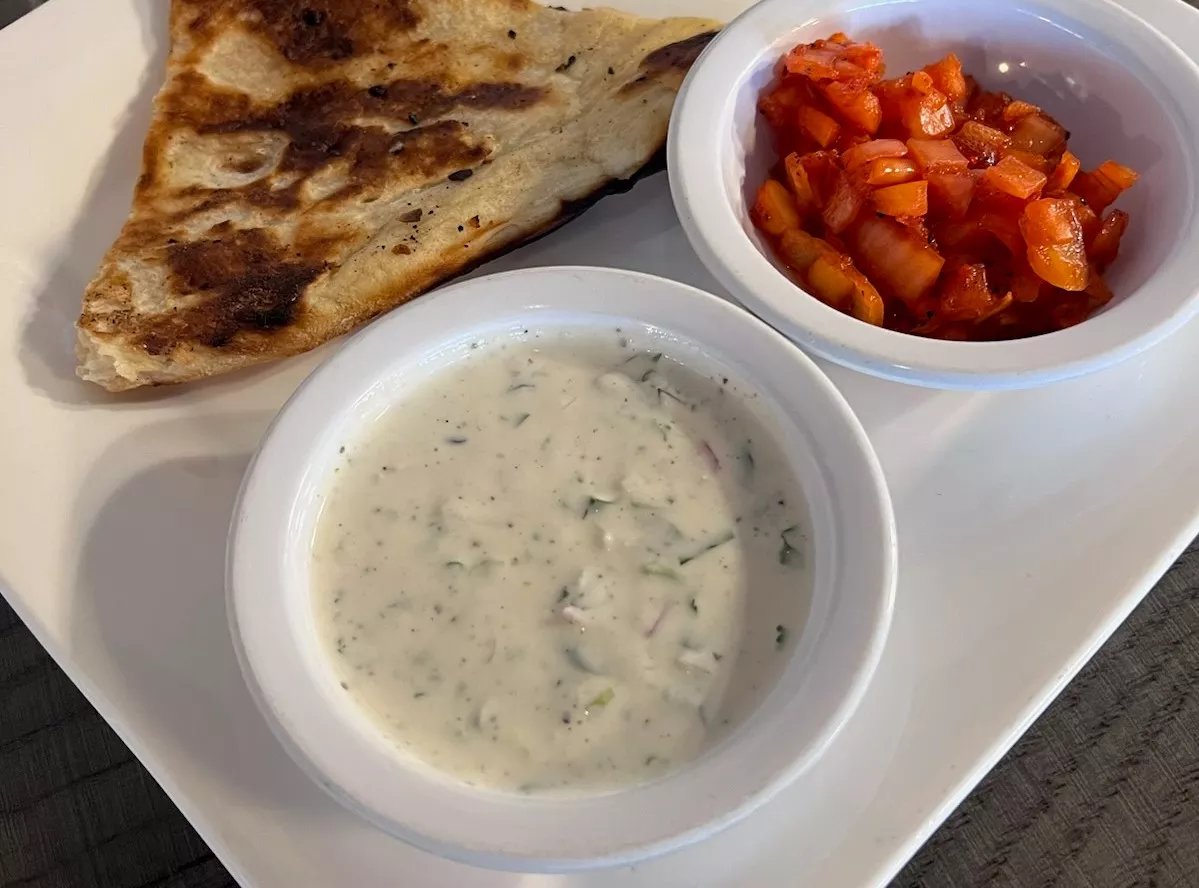 Using homemade yogurt created from a culture brought from India 26 years ago, this thick and savory sauce is truly a nectar of the gods. The addition of cilantro, onion, tomato, and celery to the standard cucumber makes it more substantial than thinner versions served at other restaurants. Layered on a crisp, chewy piece of naan with their onion chutney, it’s a flavor bomb of epic proportions.