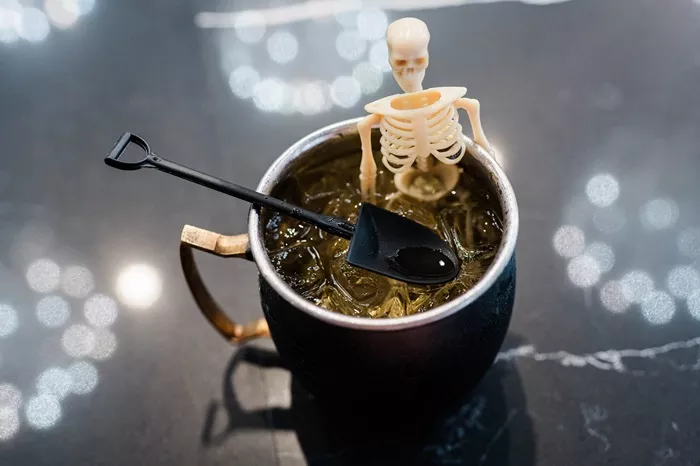 Cobra in Bloomfield adds to its signature tableside experience with “creepy crawling cocktails” like the spicy Black Widow, made with mezcal, Hornitos Reposado, muddled blackberries, serrano pepper, simple syrup, and Cointreau. Sip the snake-themed Hiss-tina mixed with Midori, Sho Chiku Bai sake, vodka, orange and lime juices, and lemon-lime soda, and topped with a Haribo twin snake and black sugar rim.