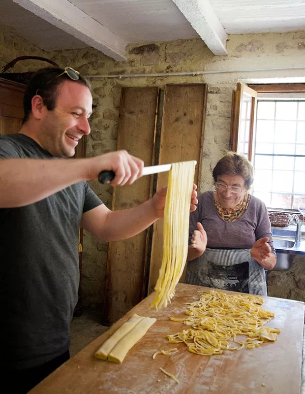 During our honeymoon in Italy, we got to visit a small town outside of Assisi, in Umbria, to go truffle hunting. We ended up spending the whole day with the family of the truffle-hunter and actually had the opportunity to cook with them. While they were cooking, the grandmother recognized my interest in what she was doing and invited me to help her make and roll out the pasta. This recipe was inspired by what I learned that day with her.