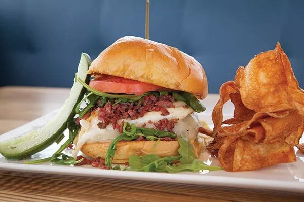 But for all these rustic touches, this is no throwback, rail-themed shed. Lighting is warm, colors are cool, and the overall feel is current and contemporary. The menu, too, is on trend with sliders, flatbread pizzas and meats prepared on the grill, and salads that call their greens by name (arugula, baby spinach and, of course, kale). Pub standards like crab cakes and mussels are represented, too. In keeping with the overall sustainable theme, everything is scrupulously sourced.