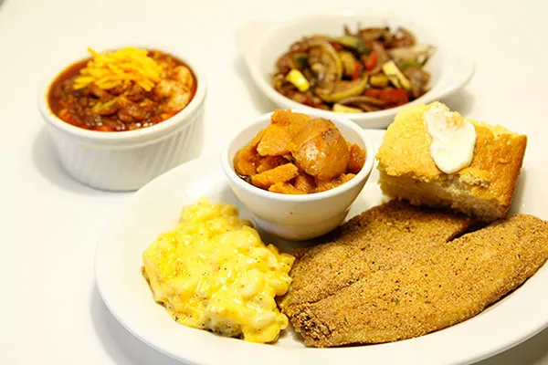 The welcoming family restaurant grew out of the Kings’ full-service catering menu, but went full-on soul food because that’s what sold best. Its most popular dishes include such Southern fare as chicken and waffles, fried chicken, mac-and-cheese, shrimp and grits, greens, candied yams and chicken-and-dumpling soup. I’d also recommend the fish and grits (the grits are cheesy) and the smothered pork chops in pepper-onion gravy. The mixed greens are savory, and the slightly sweet, cakey cornbread complements most everything.