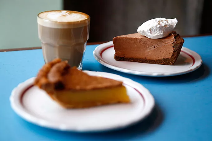 Pie by the slice, however, is the first thing on the restaurant’s menu for a reason. They make fantastic pie. The rotating selection is a mix of classic flavors (think apple, vinegar, chocolate mousse) and trendy slices (s’mores, cookies & cream).