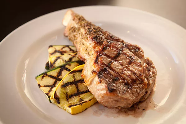 Many dishes featured roasted peppers. These sweet strips of red, yellow and orange bells, and sometimes spicy banana peppers as well, appeared as an appetizer with sausage; as a side with meats; and center stage in the linguini-with-peppers entrée, accented with garlic, basil and olive oil. Sausage and peppers is a classic combination here made extraordinary with handmade patties of Labriola’s sausage. The link was juicy and plump, browned without a hint of dryness or toughness.