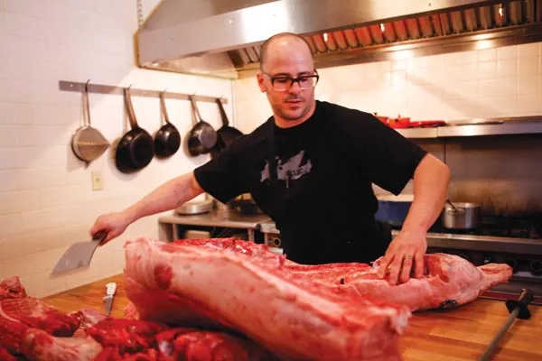His restaurant, launched in early 2012, and events such as the hog-butchering demos are ways of challenging that perception, he explains.