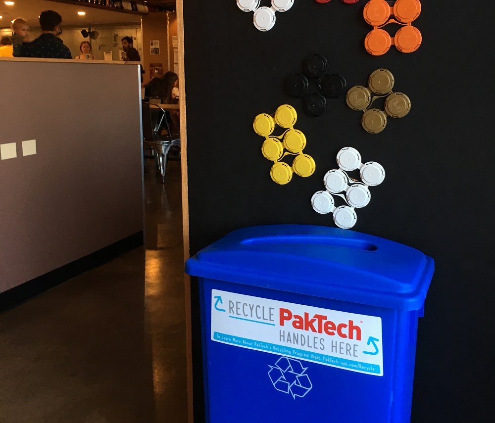 On Twitter and in a newsletter, East End informed customers of the recently launched on-site collection bins at its Larimer location, placed there to collect the hard plastic carriers used to package its craft brews. The bins are picked up by its carrier supplier, PakTech, an Oregon-based, family-owned company specializing in recyclable plastic products.