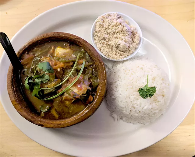 My stew was straightforward comfort, a warm embrace of nostalgia-inducing taste. The codfish flaked apart, light enough to balance out the robust coconut milk-based soup filled with vegetables and rice. It finished off with a dusting of farofa (toasted yucca flour with herbs), boosting the stew with salt. The flavors delivered a familiar homesickness, one that only follows true comfort food.