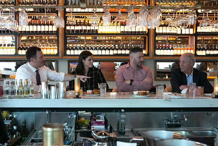 Pittsburghers Brian Devlin, Casey Timmons, Jeremy Knaebel, and Mark Devlin at fl. 2 in Downtown Credit: CP Photo: John Colombo