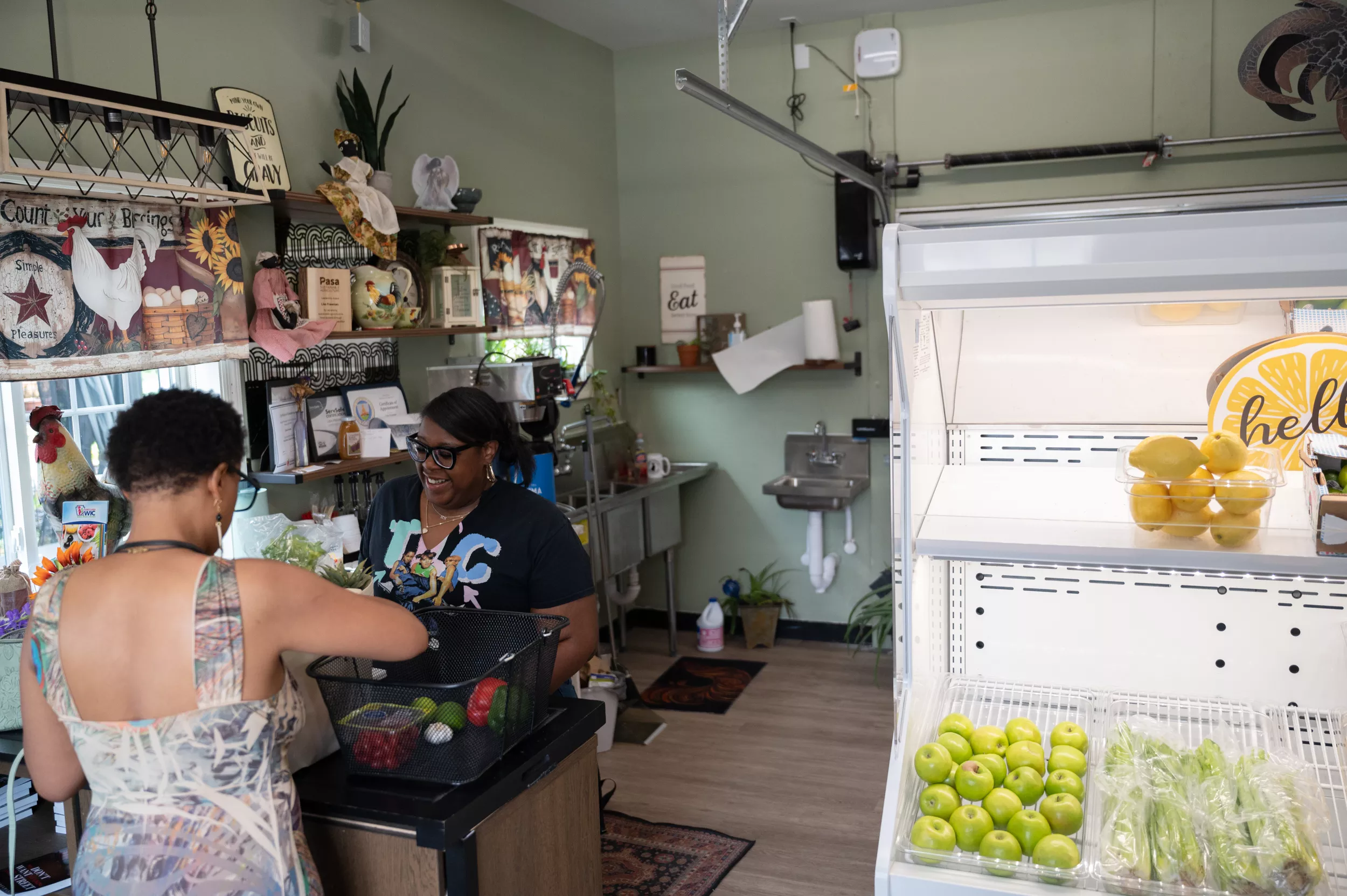 Lisa Freeman says that Freeman Family Farm & Greenhouse, a Manchester-based urban farm and grocery store, exists to make sure people are taken care of. Sometimes that means granting community members access to the solar-powered public charging station, but most of the time, Freeman’s time is occupied running a grocery store where the price tag on all the fruits and vegetables inside is whatever the customers think they should pay.