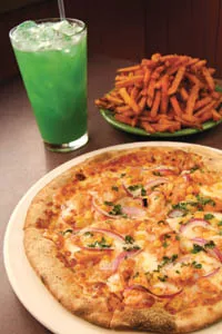 With prices this reasonable, we tried a bit of it all. Wings with bourbon BBQ sauce were big and crispy, but the sweet sauce packed hardly any spice; next time we’ll try “swamp rub.” Fire-baked Brie was wrapped in pizza dough and charred on the bottom for an extra dash of bold flavor, which beautifully complemented the creamy cheese. A generous drizzle of honey lent to our impression that this dish could have been offered as dessert, while a few slices of tart apple — too few — brightened it up.