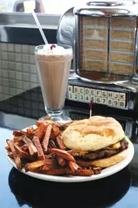 Jason followed up with a Bar-B-Q Glide, topped with bacon, barbecue sauce and more cheddar. The bun had a crusty character, there was just enough sauce, and the ratio of burger to bacon ensured that Jason enjoyed both. A side of fries turned out to be classic, diner-style shoestrings, golden and fluffy. The only letdown was a milkshake, which was served with seconds in a frosty metal frappe cup, just like it used to be. The whipped cream and cherry on top were a welcome throwback to childhood. But the flavor inside was a bit wan, and icy chunks remained to clog the straw.