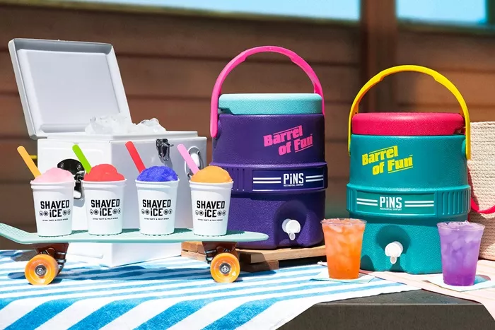 College bars and waterparks are natural Trashy Drink hubs, but a newer venue, the adult arcade, has brought a wonderland of new libations with it. Pins Mechanical, the South Side “adult playground” opened in 2022, currently features “patio favorites” that include a cooler of Patio Punch and four flavors of boozy shaved ice cocktails.