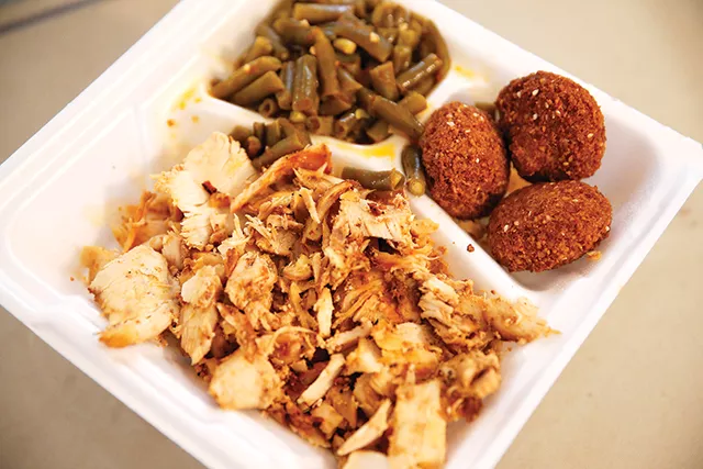 The cafeteria-style restaurant on Smithfield Street has a few small tables surrounding the kitchen. The setting is nothing fancy. The walls are colored bright orange. The smell of frying falafel wafts from behind the counter.