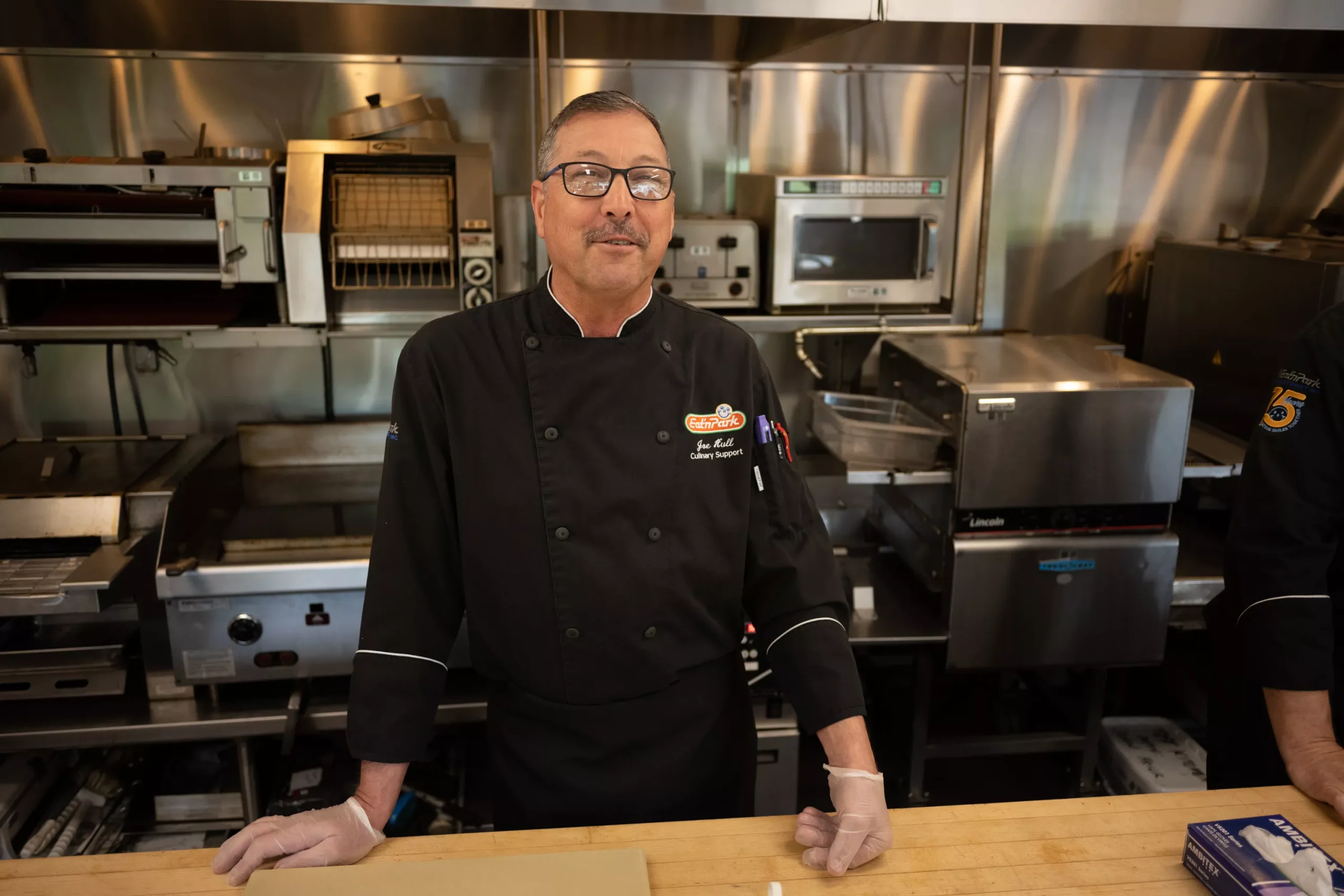 The test kitchen — tucked behind the operating restaurant — is helmed by John Frick, Eat’n Park’s director of menu development, alongside culinary support specialist Joe Hull.